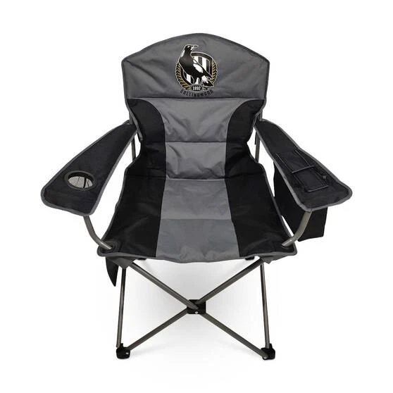 How passionate are you about your Australian Football League side? If you are a diehard for your designated footy side, then show your support with the latest range of AFL camp chairs. However, these chairs aren’t all about looks, and making a statement to the opposition fans. They are packed with an abundance of features which make them a great and durable, high quality chair. With a powder-coated steel frame, the chair takes up to 130kg weight. The chair is also comfortable, thanks to the fabric layering, as well as highly practical with an inbuilt insulated drink holder and storage bag in the armrest. So sit back and enjoy the game with the latest range of supporter arm chairs. If you support the boys inblack and white from Collingwood, grab a chair and show your true colours.