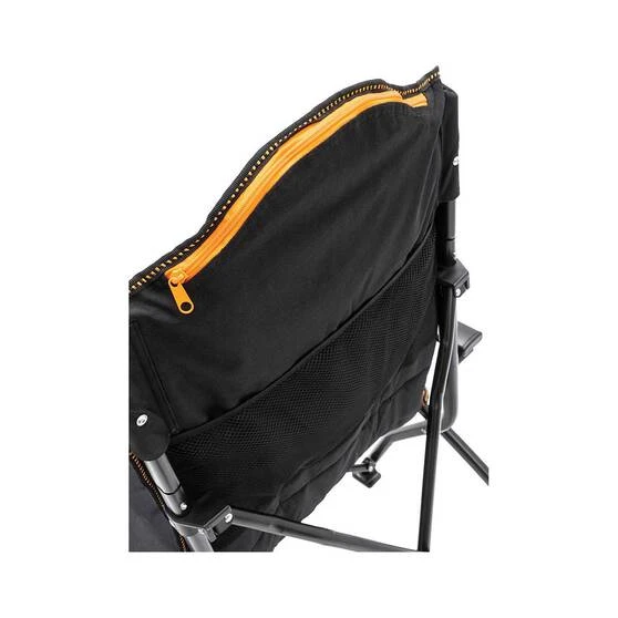Take comfort to the next level with the Darche Vipor XVI Camp Chair. With a padded high back and headrest this chair is perfect for lounging around the campfire. This chair is made tough, with a 150kg weight capacity, padded 600D polyester and mesh materials with a sturdy steel frame. The wide feet prevent you from sinking into soft ground.