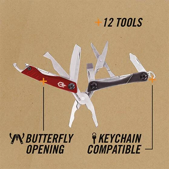 The Dime Multi-tool by Gerber is small and compact but packed with features! Perfect for attaching to your keychain to have a wide variety of tools at your fingertips whenever you need them. It includes needle nose spring-loaded pliers, a wire cutter, plain edge blade, retail package opener, scissors, medium flat screwdriver, phillips head screwdriver, bottle opener, tweezers and a file. With a sturdy stainless steel construction and a 25 year warranty you can’t go wrong with the Gerber Dime Multi-tool.
