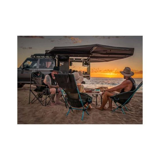 The Helinox Savanna Chair has an advanced design featuring a high back and wider seat for optimum rest and relaxation after a day of hiking. With padded armrest ‘wings’ on the seat sides that offer a comfortable way to rest your arms. the high back on Savanna Chair features a padded cross-bar and offers a comfortable rest for your head. For extra comfort, a headrest flap will accomadate a pillow or the optional Air and Foam Headrest accessory. The flap secures to the rear of the seat back with velcro and will help hold in place any padding placed beneath it. Designed to hold a frame up to 145kg, the mega lightweight aluminum alloy frame is strong, with the elasticated shock cord and high-strength, fibre-reinforced Nylon 66 hubs. The ultimate chair for the avid hiker or load concious camper, Helinox has the quality gear sorted so you can make the most of your adventure.