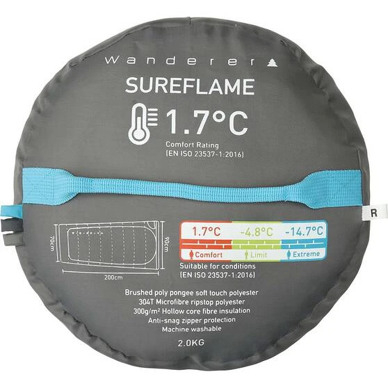 A high-tech 304T ripstop soft touch polyester shell ensures durability for use night after night, and the heavy duty SBS zips with easy grab puller and full anti-snag zipper protection ensure you can get in and out with ease—no matter the time of day or night! This sleeping bag has been designed to be machine washable; simply follow the care instructions to guide you. The SureFlame has been designed with a tapered shape for comfort, and is a sleek camper hoodless style, including a stuff sack for easy storage—perfect for your next backpacking or camping adventure!