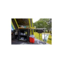The Eco Table Kitchen Kit by Zempire is a must have accessory for your Eco Fold Cupboard. Simply attach the Kitchen Kit to the end of your cupboard and you have turned it into a camp kitchen with everything you need! It comes with a side preparation table, sink with tap for drainage and a handy bin holder off the side. This quality piece of kit is made from a rust proof aluminium frame and has aluminium edges laminated MDF shelves making it lightweight and easy to clean. Up your camp kitchen game with the Eco Table Kitchen Kit.